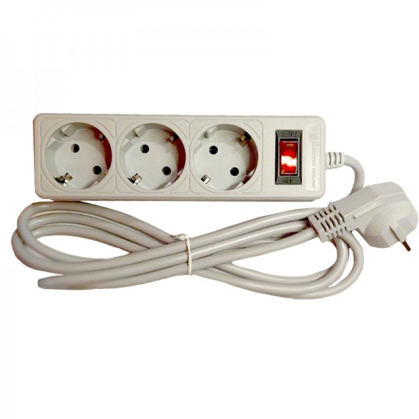 Мережевий фільтр "Electro House" 3гнізда 2м+вимик.+зазем. сірий 10A №EH-NFG-3.2
