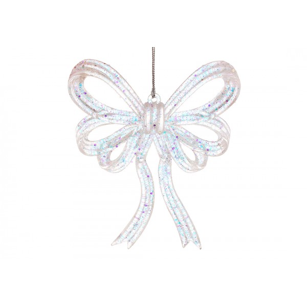 Новорічні пластикові прикраси Bonadi Прикраса пласт. Бант 13см прозорий з блискітками J88-042/Bonadi/ Bonadi