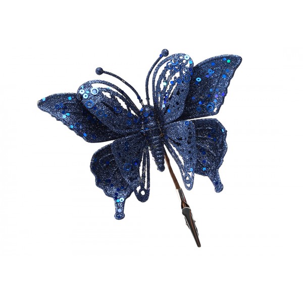 Прикраса пласт. Метелик 17см на кліпсі синій глітер 839-528/Bonadi/(24)