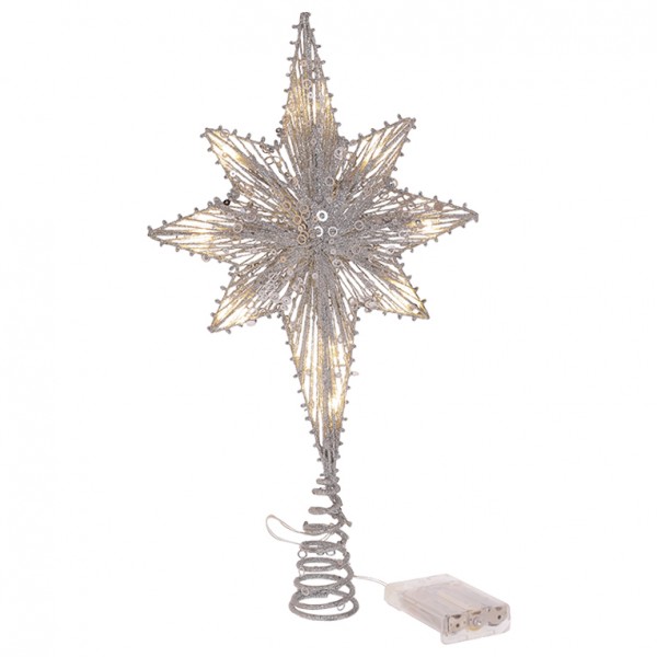 Верхівка пласт. Зірка 40см,10LED,сріло NY12-372/Bonadi/