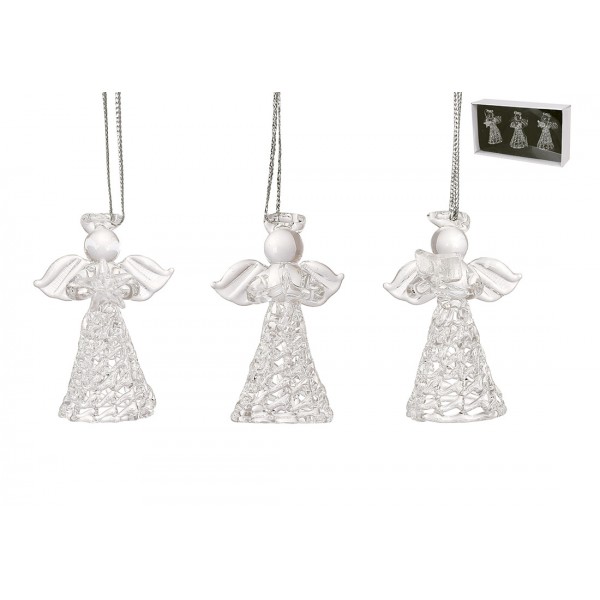 Набір прикрас скло "Янголи" 6см 3шт, прозоре з золотом №115-251/Bonadi/(24)
