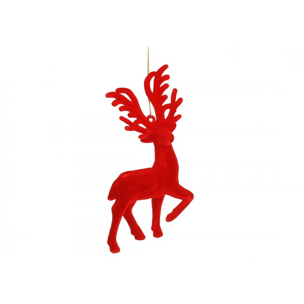 Прикраса пласт. "Олень" 12см з флоковим напиленням,червоний №J88-170/Bonadi/