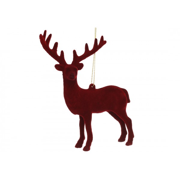 Прикраса пласт. "Олень" 14см з флоковим напиленням,бургунді №J88-174/Bonadi/
