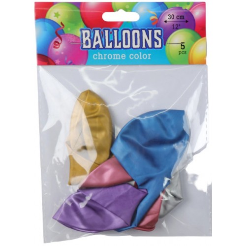 Набір кульок повітр. "Хром" 12" 5шт мікс кольорів №QQ25003/Мандарин/