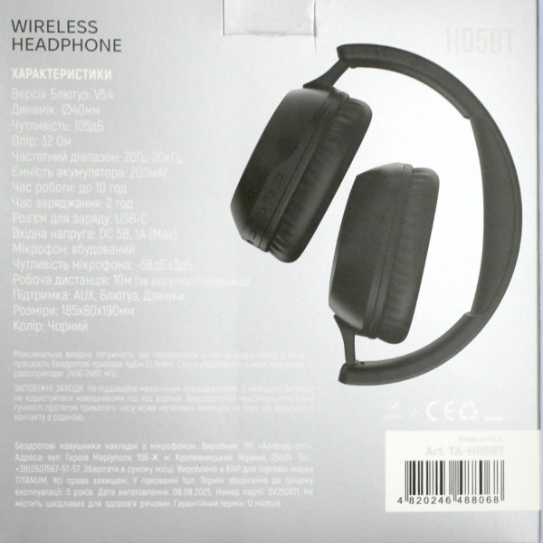 Навушники Titanum H05BT Black №8068