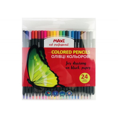 Олівці кольор. 24 кольор. Maxi MX15106 для чорного та білого паперу(6)(72)