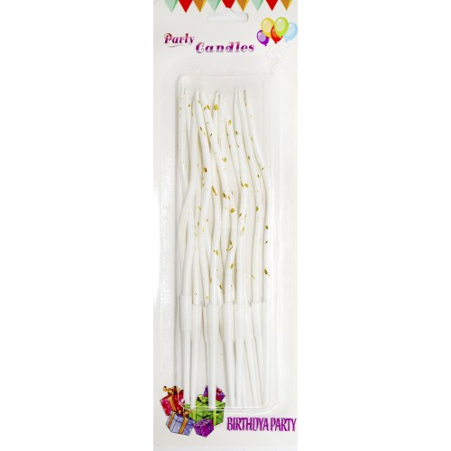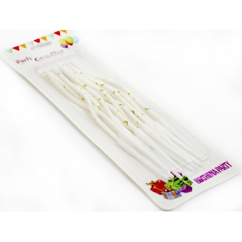 Свічка в торт 12шт+12підсв. "Спіральні" в крапку біла №A6/7025(60)