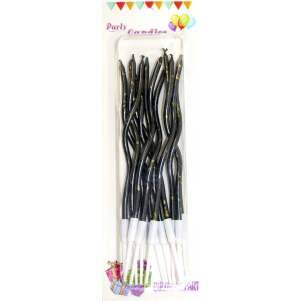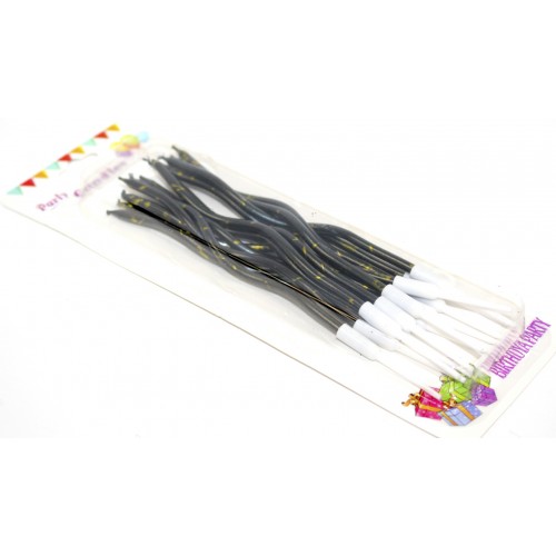 Свічка в торт 12шт+12підсв. "Спіральні" в крапку чорна №A6/7025(60)