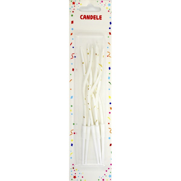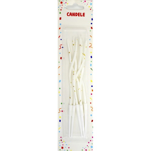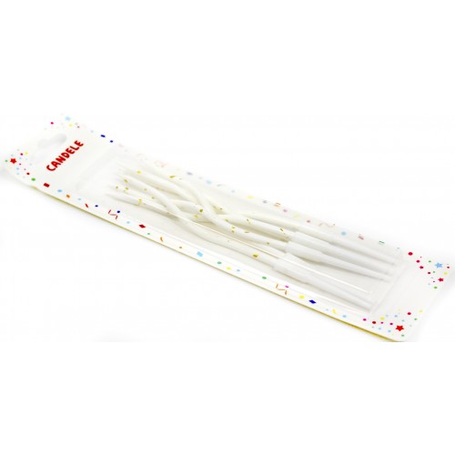 Свічка в торт 6шт+6підсв. "Спіральні" в крапку білі №3696(100)