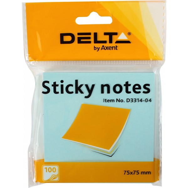 Блок для заміток з липким шаром 75х75 мм 100 аркушів синій Delta by Axent (1) (24) 3314-04