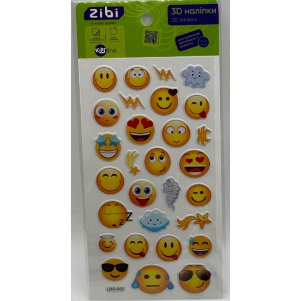 Наліпка 3D "Смайли" 18см, KIDS Line №ZB.63305/Zibi/