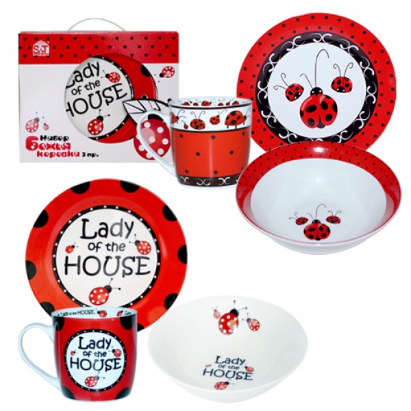 Сервіз дит. склокерам.3предм.(тарілка 19см,чашка 250мл,салатник 380мл) Божа корівка5143