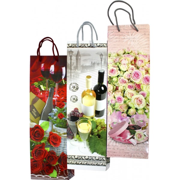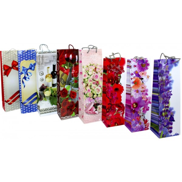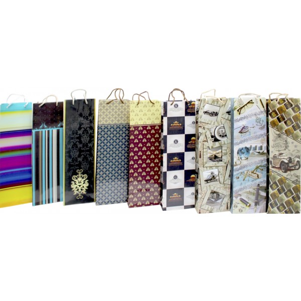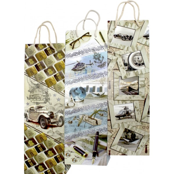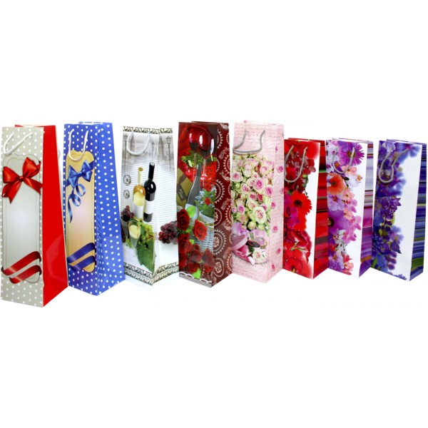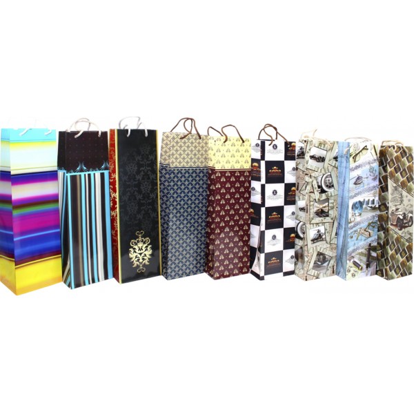 Пакет подарунковий під пляшку 42 х12х9,5 см мікс (12) 300