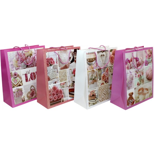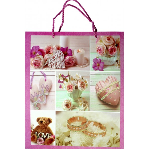 Пакет подарунковий папер. 18х23х8,5см, 3D,4 види №287-M/461664/Leader/(12)