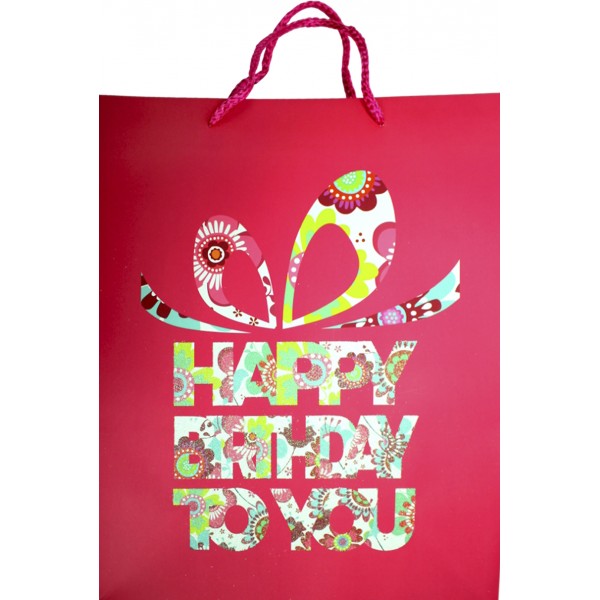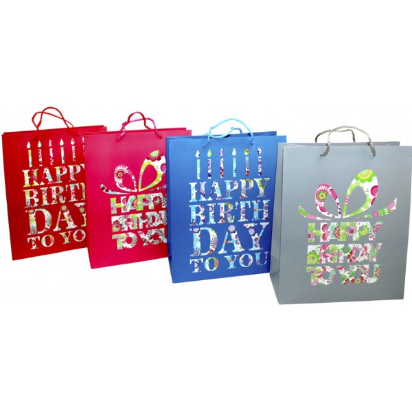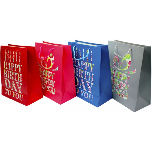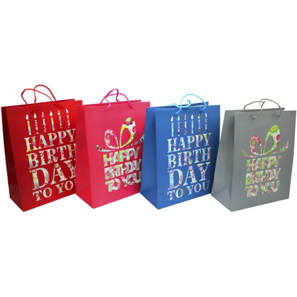 Пакет подарунковий папер. 26х32х10см Happy Birthday,4 види №461447/Лідер/(12)
