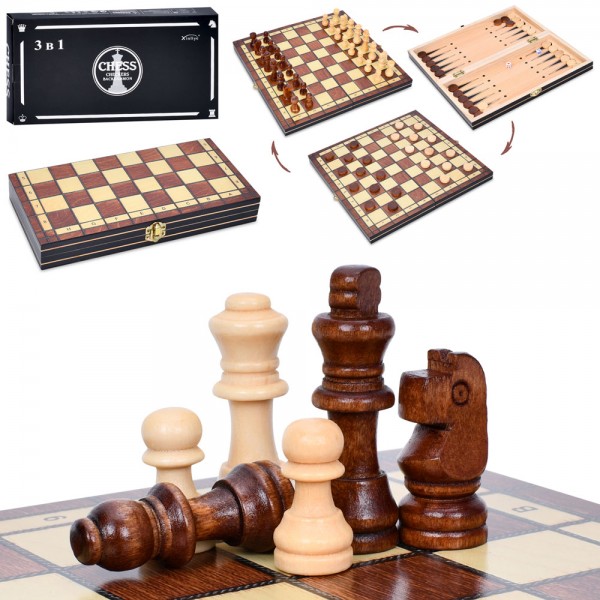 Шахи дерев.,3в1(шашки),фігури дерев.,в кор-ці,29,5х15,5х4,5см №FG240502023L(30)
