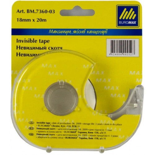 Стрічка клейка канц. "Buromax" 18ммх20м прозор. в диспенсері №7360-03(8)(72)