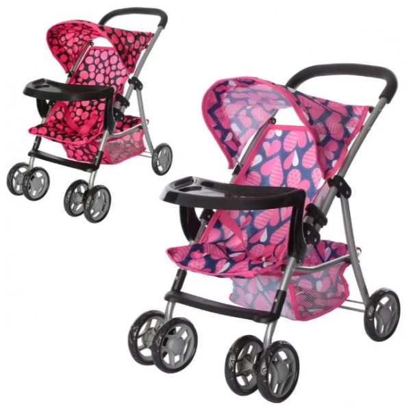 Аксесуари для ляльок Коляска для ляльок металева 4 колеса, передні поворотні, козирок, кошик, столик 9304BWT/025