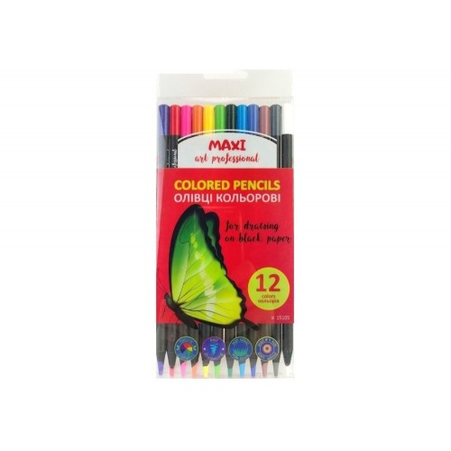 Олівці кольор. 12 кольор. Maxi MX15105 для чорного та білого паперу(12)(144)
