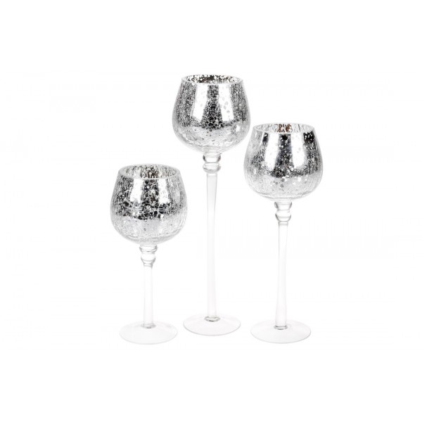 Підсвічник скло (3шт) ефект битого скла 20/25/30см срібло №527-701/Bonadi/