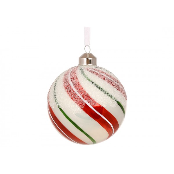 Куля скло 10см "Льодяник" білий з червоним №NY29-511/Bonadi/(6)