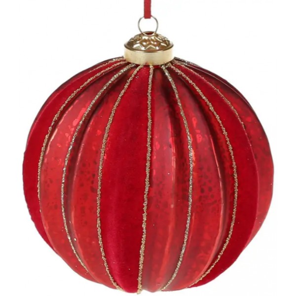 Куля скло 10см з покриттям матовий антик та оксамит,червоний №118-727/Bonadi/(12)
