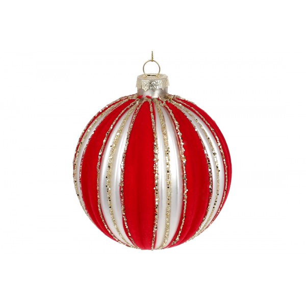 Куля скло 10см рельєфної форми,з декором з оксамиту,червоний з білим перлин№118-943/Bonadi