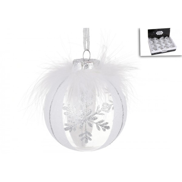 Куля скло 8см "Сніжинка" з декором із пір'я,білий №898-270/Bonadi/(6)