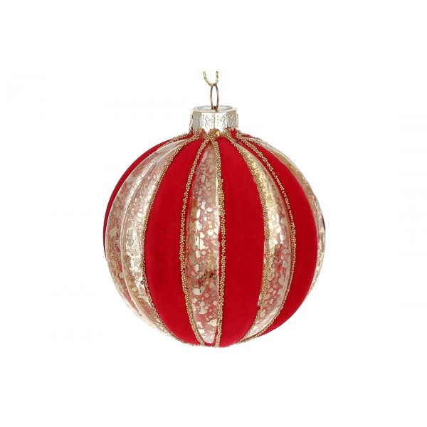 Куля скло 8см "Червоний оксамит" рельєфної форми,червоний з платиною №118-055/Bonadi/(6)