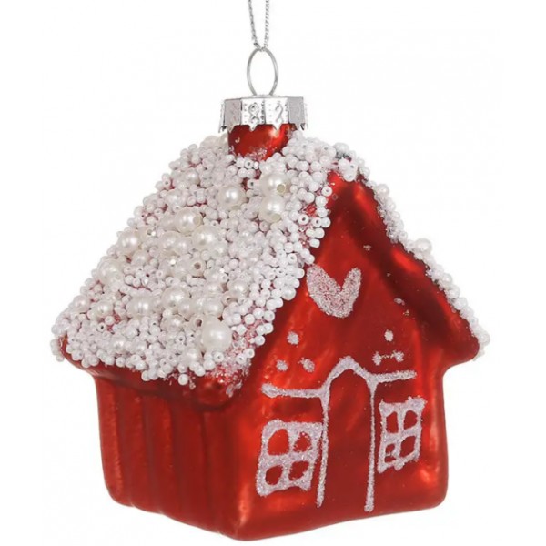 Прикраса скло "Будиночок" 10см,червоний з білим №115-120/Bonadi/