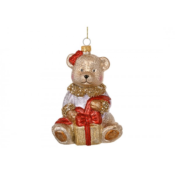 Прикраса скло "Ведмедик з подарунками" 13см №NY29-528/Bonadi/