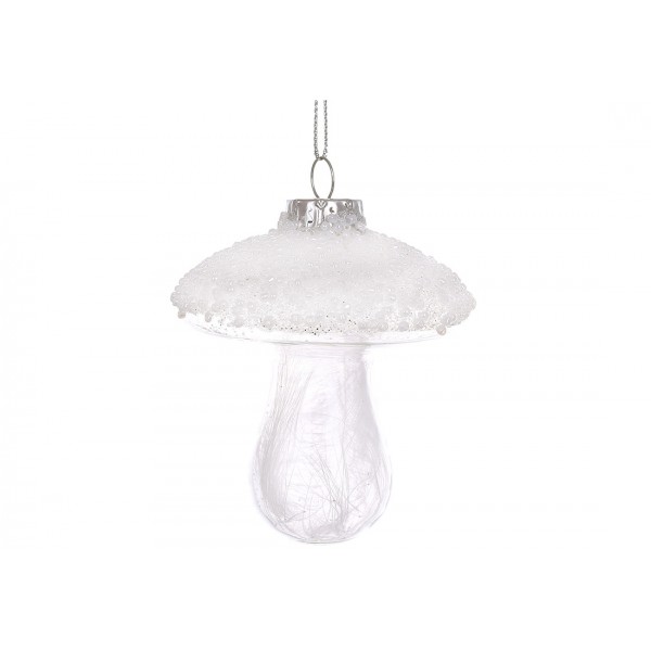 Прикраса скло "Гриб" 7х8см,прозорий з білим бісером №115-205/Bonadi/