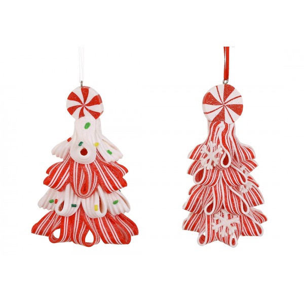 Фігурка-підвіска полістоун"Ялинка-карамелька"7х7х11см,червоний з білим,2вида№125-021Bonadi