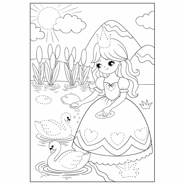 Розмальовка А4 "Пригоди принцеси" обведи та розфарбуй 12стор. №743277/1В/