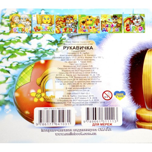 Книжка B6 "Казкові подарунки: Рукавичка" (укр.)№1031(30)