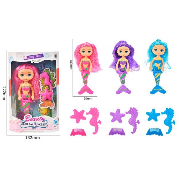 Лялька 18см,русалка,морські мешканці,гребінець,3 кольори,в кор-ці,13,5х22х5см №1802(144)