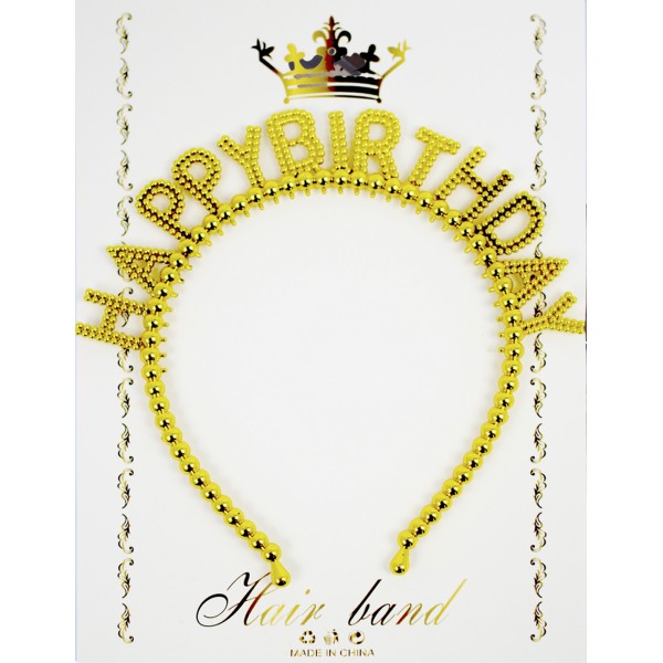 Обруч для волосся "Happy birthday" бусинки золото №15113(20)