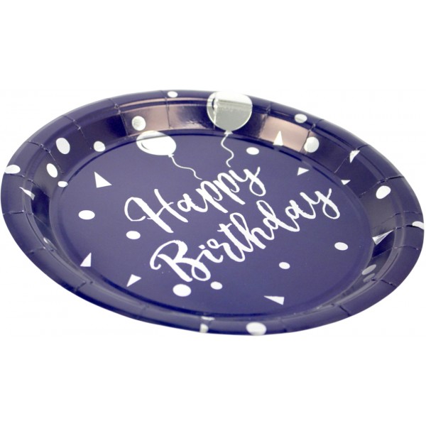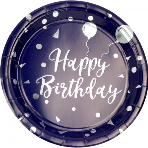 Тарілка паперова, d-230мм,синя Happy birthday срібло(10)