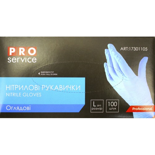 Рукавиці нітрилові"PRO servis"(100шт) L огляд.не стер.,не припудрені,світ.-блакитні №8790