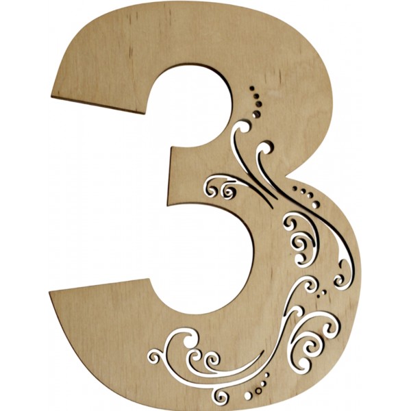 Буквы и цифры из фанеры Заготовка фанера Цифра-завитушка 3 h20см