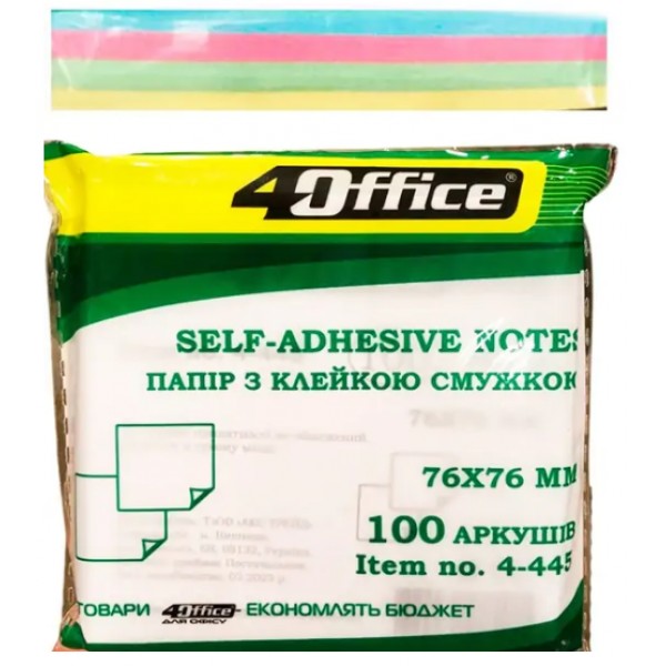 Блок/зам. липк. краєм 76х76мм 100арк.,неон. асорті "4Office" №4-423-21N/5422(12)
