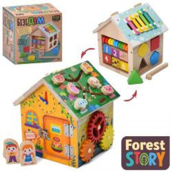 Іграшка дерев'яна Бізікуб,будиночок,ксилофон,шест.,сортер,в кор-ці,18х21х19см №MD1364(12)