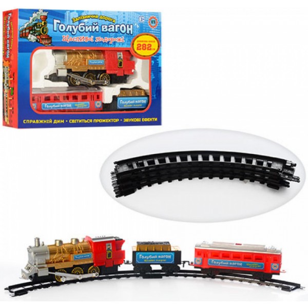 Железная дорога на батарейке, музыка, светится Голубой вагон, дым, длина пути 580 см, в коробке 61х36х7,5 см (8) (610) 7016
