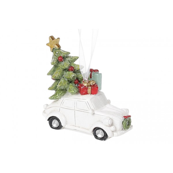 Підвіска декор.полістоун Машинка з новорічною ялинкою 6,5см,білий 707-288/Bonadi/