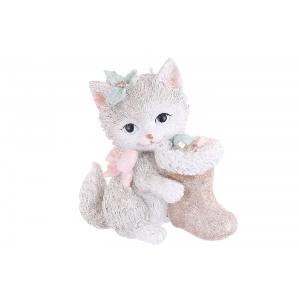 Фігурка-підвіска полістоун "Котик із чобітком" 10,5х5,5х10,5см сірий з рожевим K07-588/Bonadi/(4)(24)