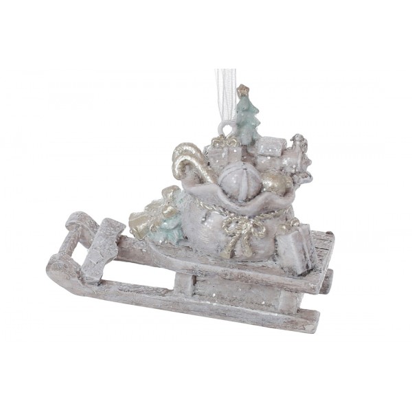 Фігурка-підвіска полістоун"Санки з подарунками"7,5см,сірий з шамп. і мятою№K07-198/Bonadi/