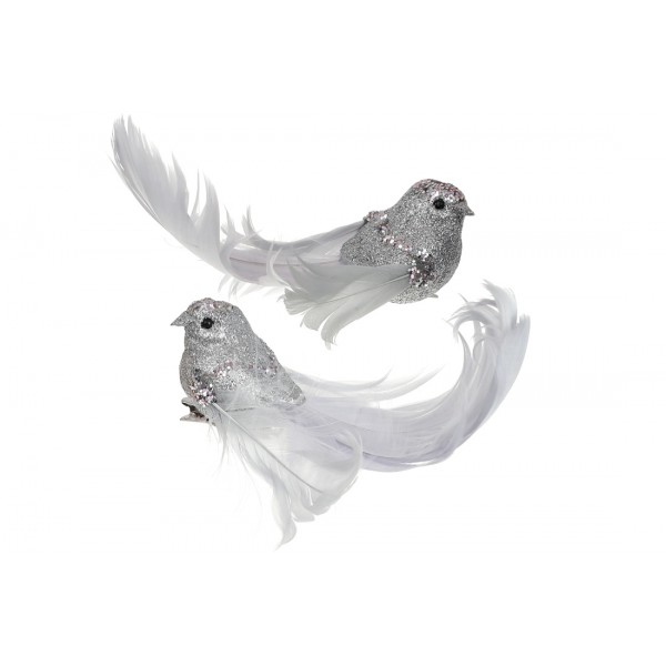Пташка декор. 12,5см на кліпсі,срібло,2 види 499-097/Bonadi/ Bonadi