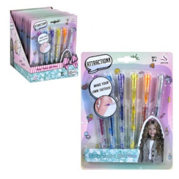 Косметика: набір для тату, набір ручок 6шт,в дисплеї 16х21х21см №J-1168B(12)(96)