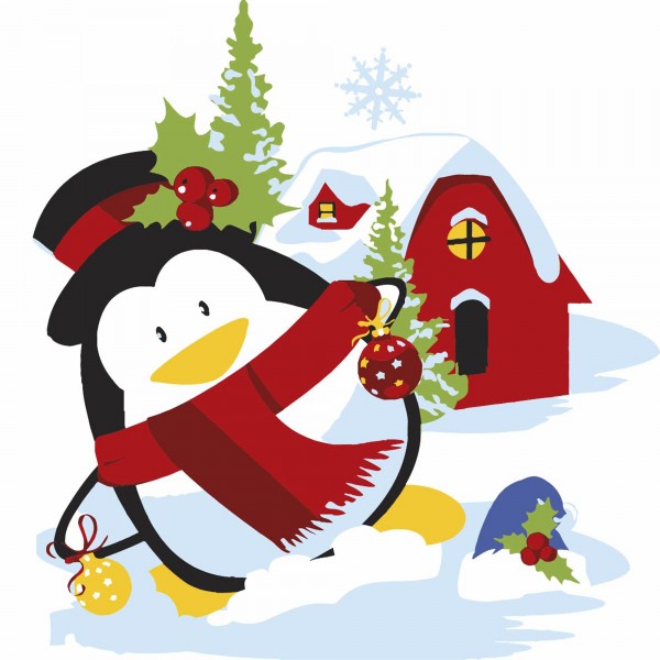 Картини по номерах "Пінгвін біля будинку" 20х20см №HH8003/Strateg/