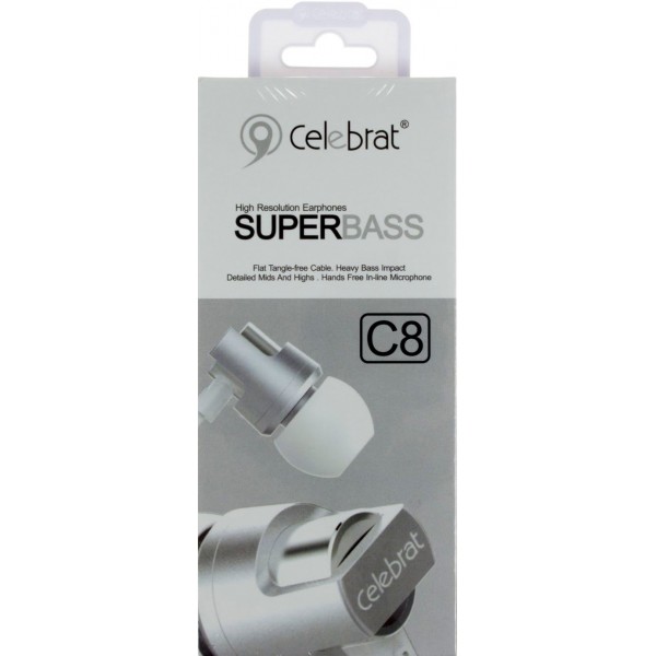 Навушники вакуумні метал. Celebrat C8 silver+мікрофон Celebrat